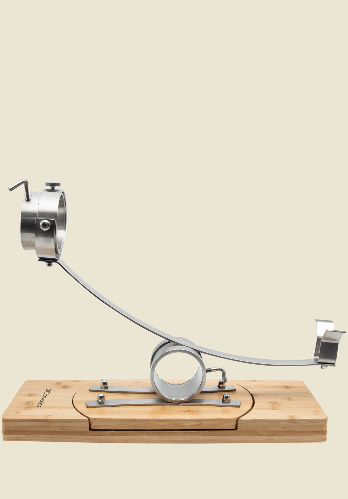 Im Unterschied zu anderen professionellen Modellen verfügt er zusätzlich über einen Mechanismus zur Rotation um die vertikale Achse sowie über eine verstellbare Neigung. Dadurch bietet er maximale Flexibilität und Präzision bei der Arbeit.